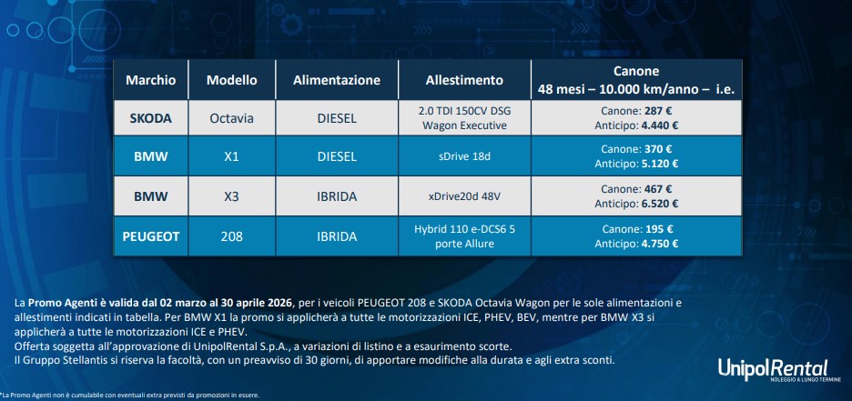 UNIPOLRENTAL LANCIA UNA NUOVA INIZIATIVA DEDICATA AI CLIENTI DELLE AGENZIE CON UNA PROMO SCONTATA FINO AL 30/04